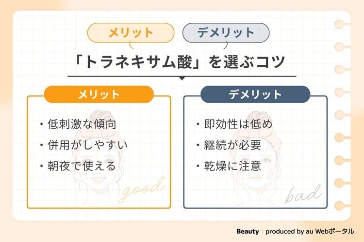 トラネキサム酸は、シミ予防と肌荒れケアの両方にアプローチできる頼もしい成分だと言えますね。